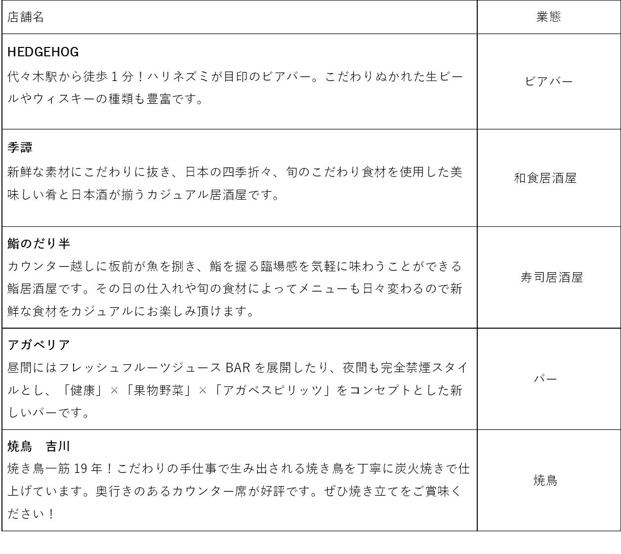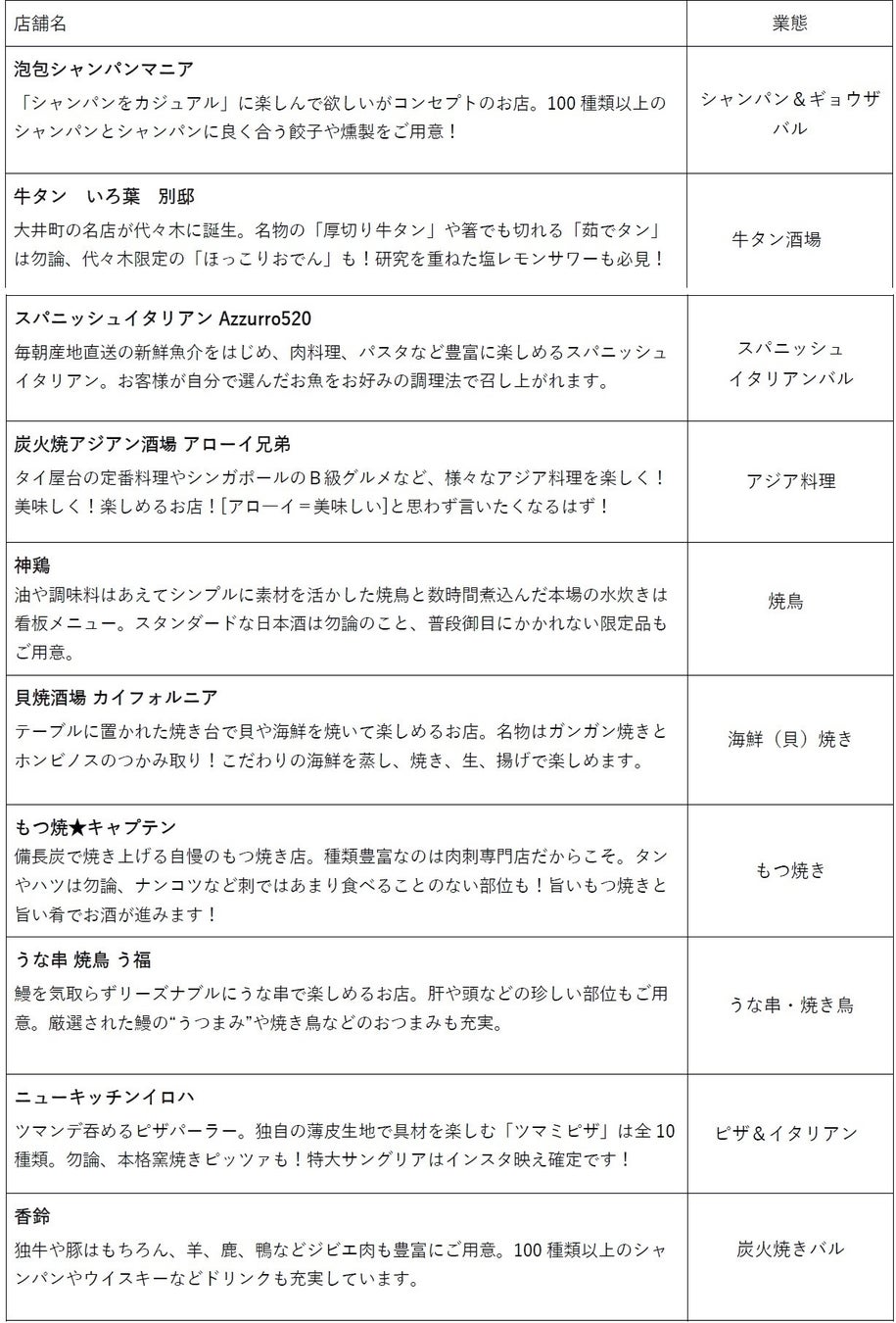 【ほぼ新宿のれん街 倉庫別館】テナント一覧