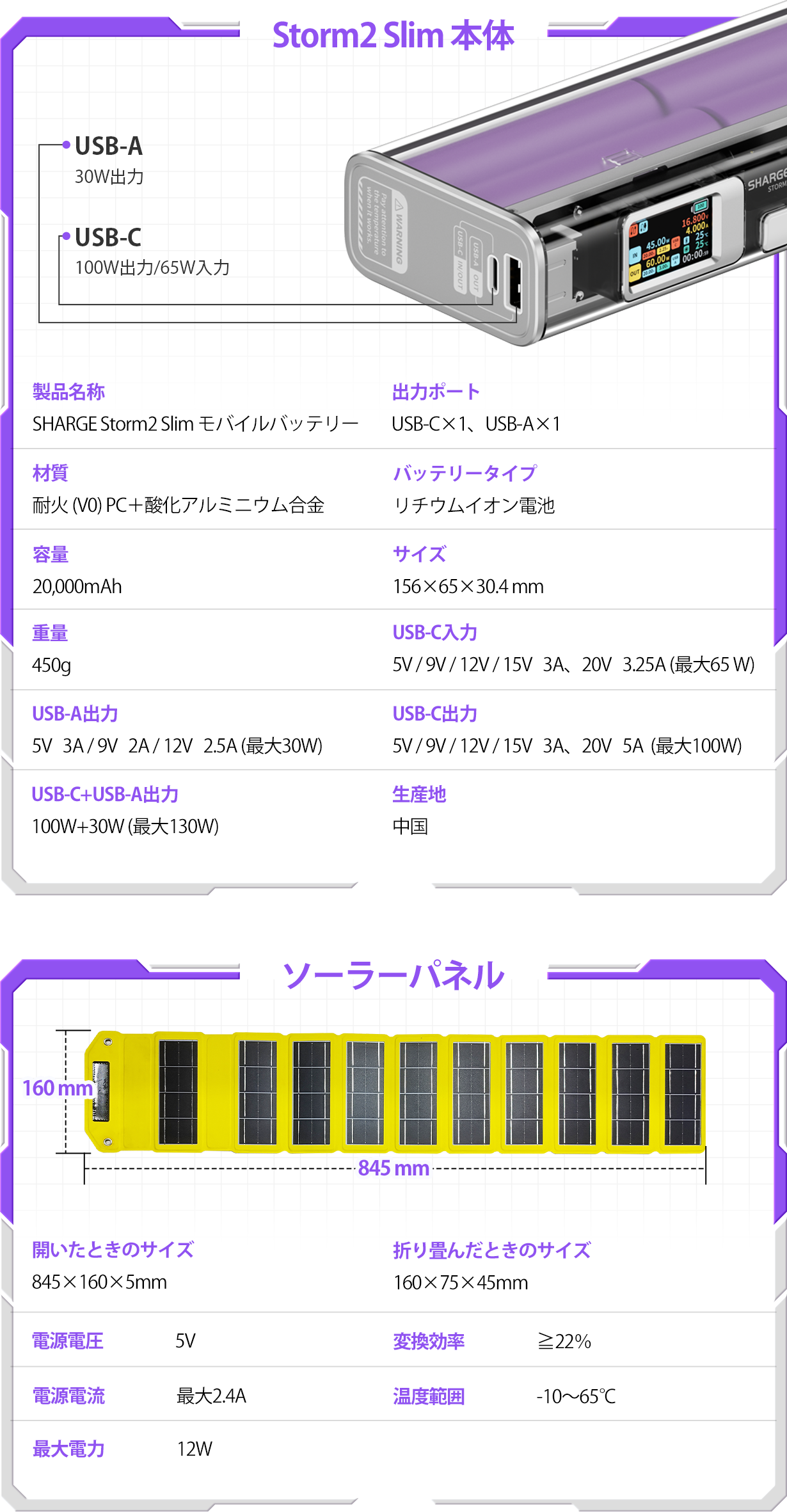 製品名称:SHARGE Storm2 Slim モバイルバッテリー