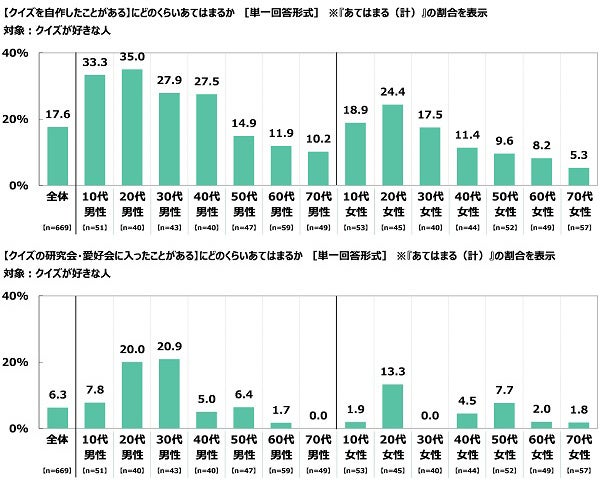 - 「クイズを自作したことがある」クイズ好きな20代男性の35%