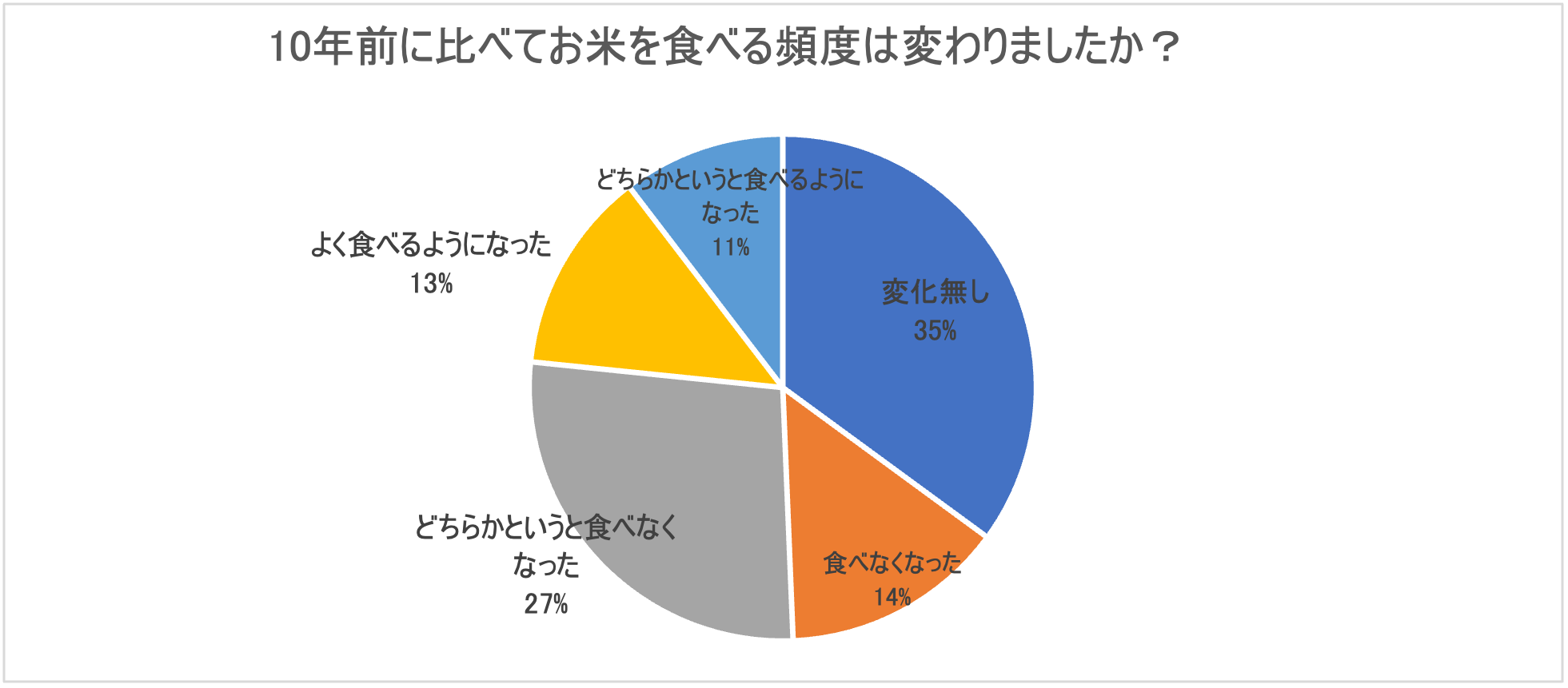 10年前と比較し、お米を食べる機会が減ったと答えた人はおよそ全体の6割いるという結果となった。