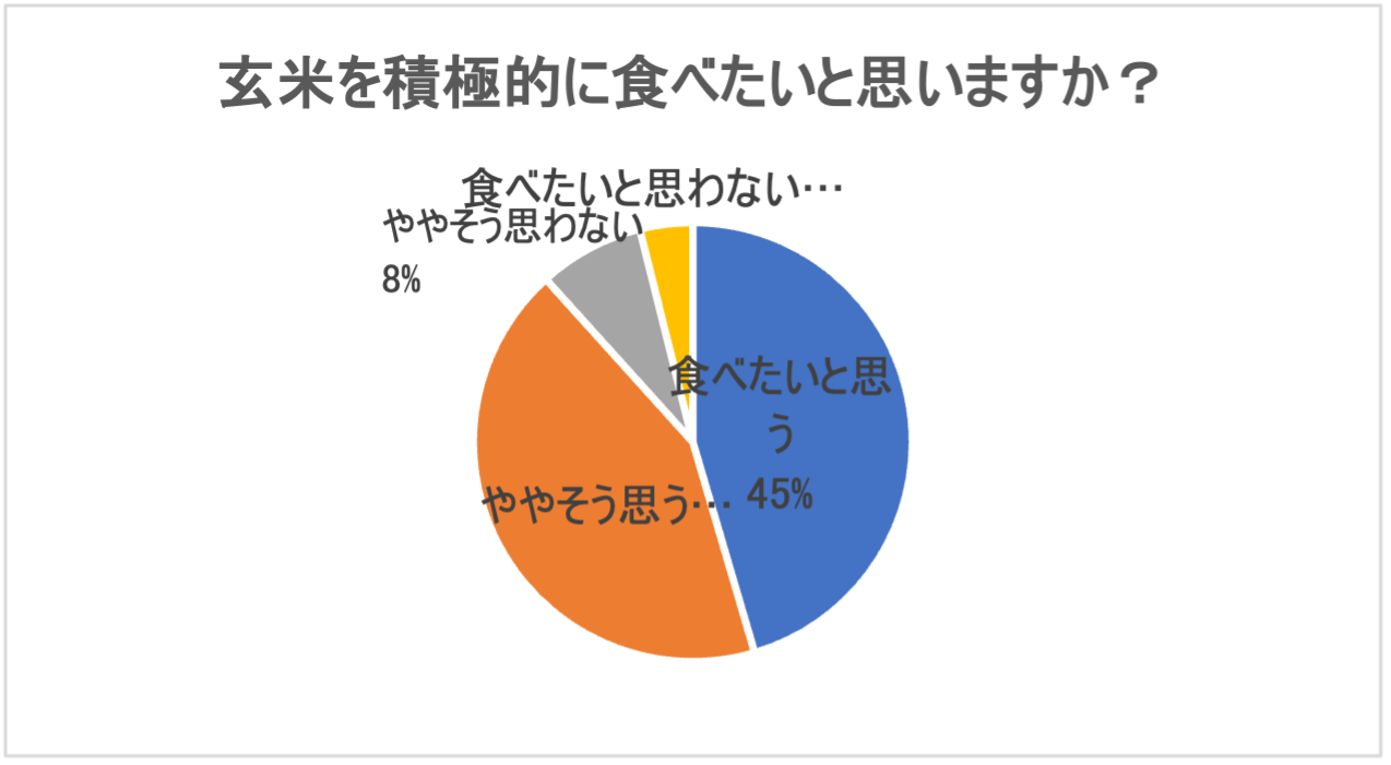 「白米・玄米共に摂取してゆきたい」と「玄米のみ摂取してゆきたい」の計が88%とかなり高い数字となっています。