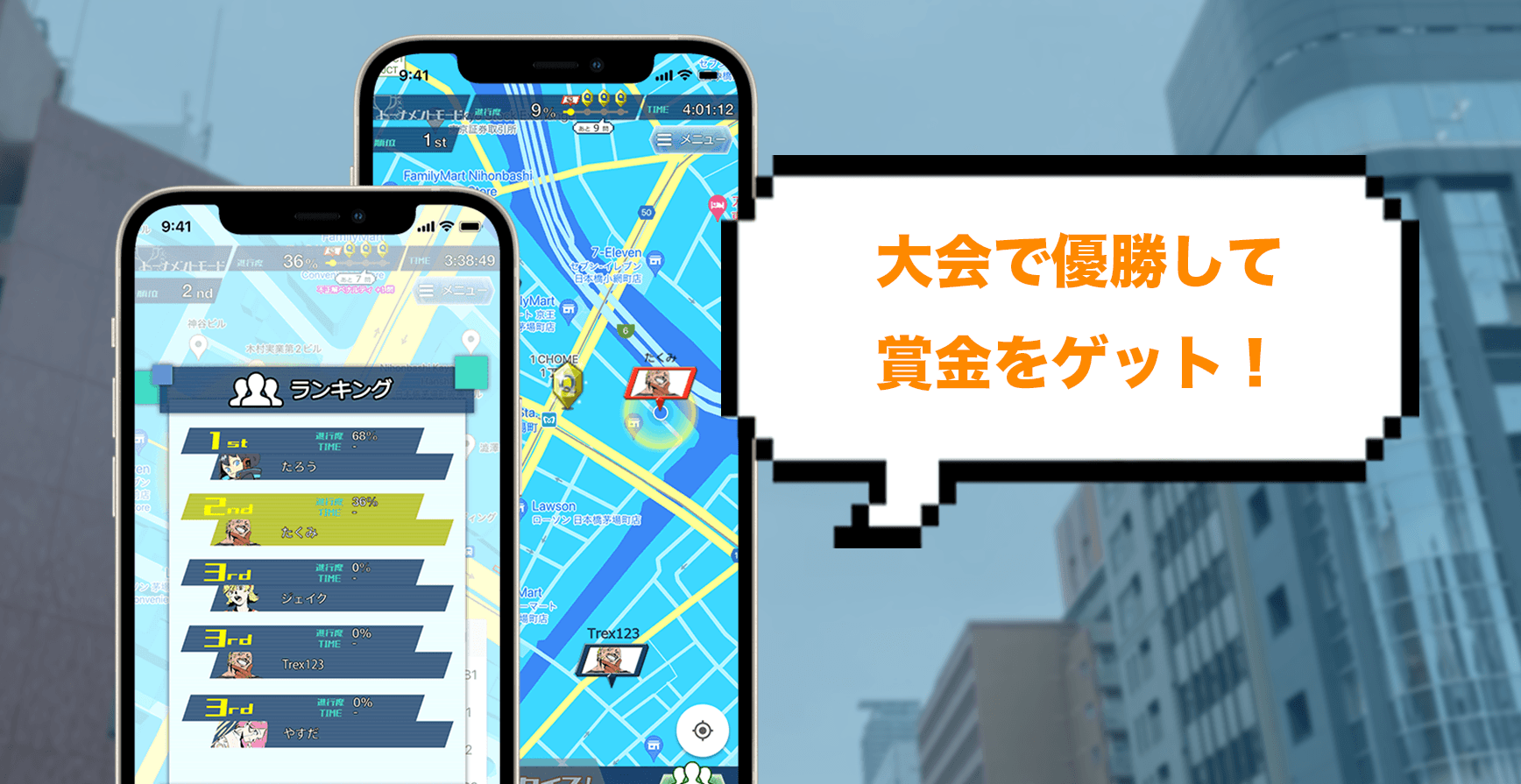 他のプレイヤーの現在位置や進捗度はリアルタイムで見ることができるので接戦が期待できます!