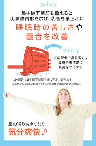 年齢に関係なく呼吸ストレッチ出来る様に鼻呼吸補助具に諸機能を組み込みました。