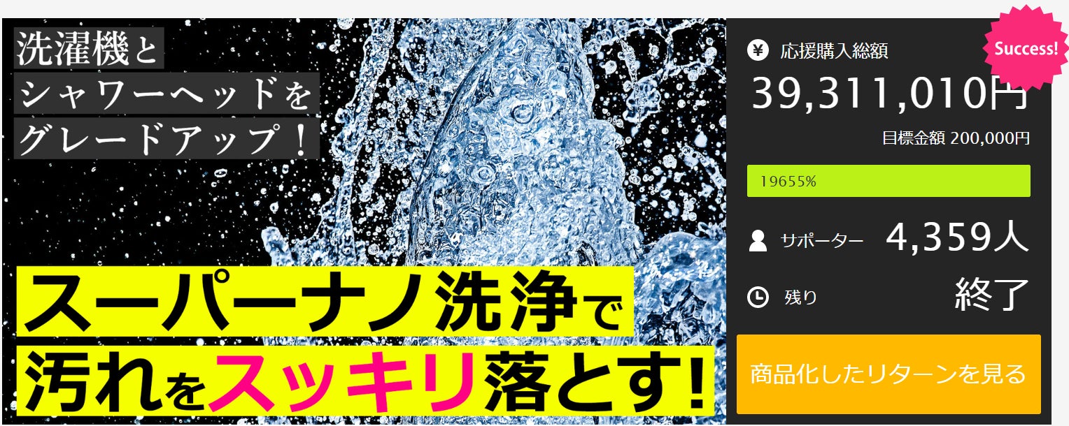 - 応援総額3930万円のナノバブル発生器を更にアップデート!