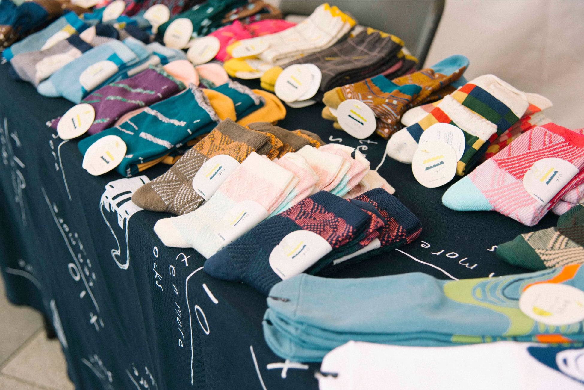 台湾の靴下ブランド “+10・テンモア”。日本のテキスタイルブランド “JUBILEE”の実験的コラボレーションアイテムを販売。テーマは「オノマトペ研究」。第1言語が異なるわたしたちにとって大事なコミュケーションツールの1つである擬音語・擬態語。わたしが感じることを、あなたはどのように感じ、どう表現するのか。