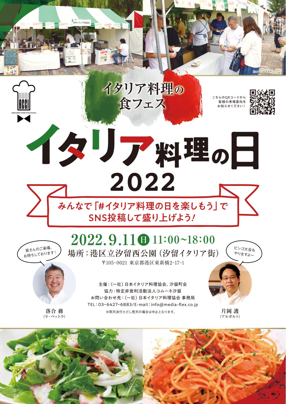 一般社団法人日イタリア料理協会(会長:片岡護(アルポルト))は、9月11日(日)に港区立汐留西公園にて、イタリア料理の食フェス「イタリア料理の日」を開催する運びとなりました。