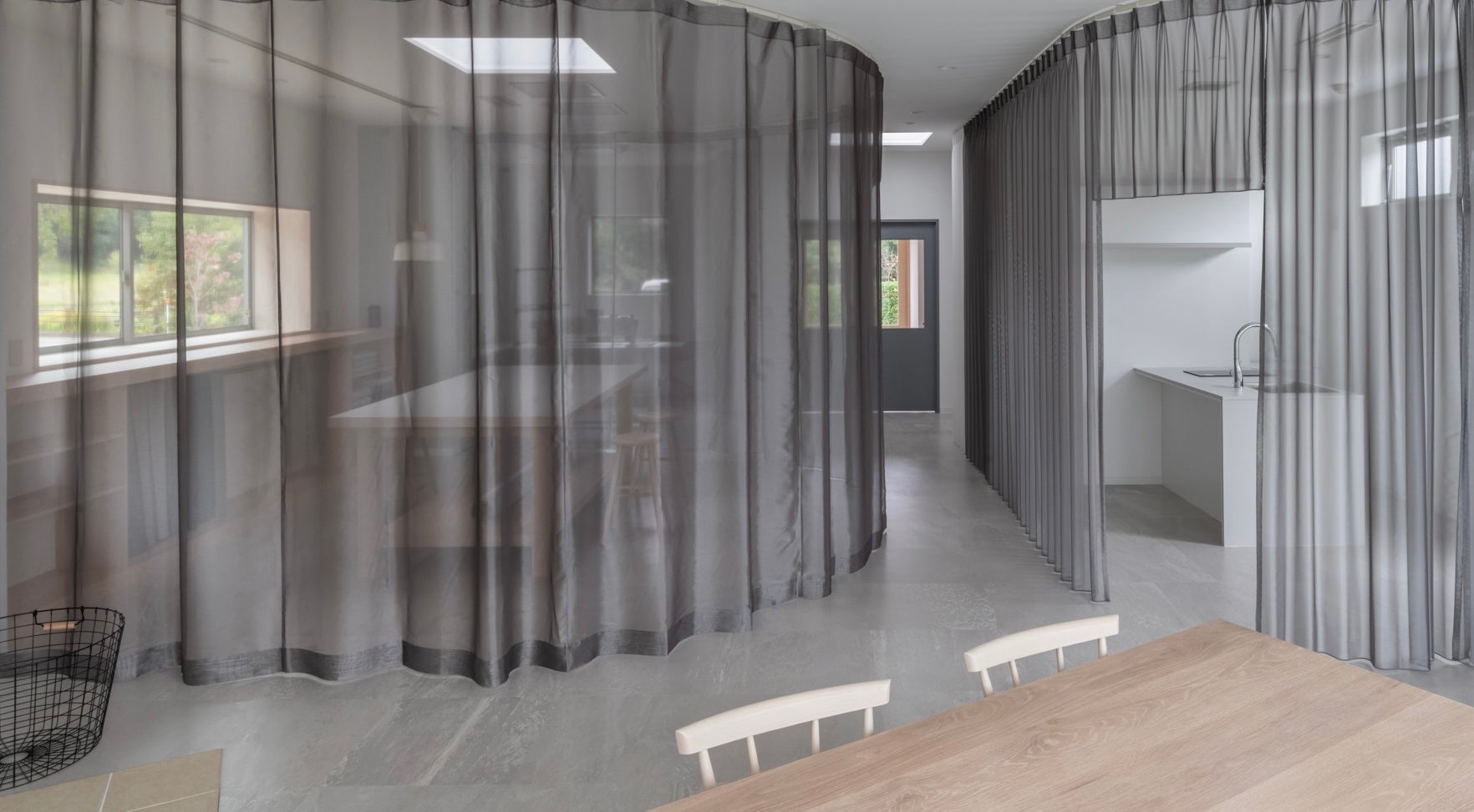 各窓のサイズ、シーンにあったオーダーメイドカーテンに「airpuric」加工を施すことでインテリアとしての美しさはもちろんこと、機能性も兼ね備えた高性能カーテンを提供しています。
