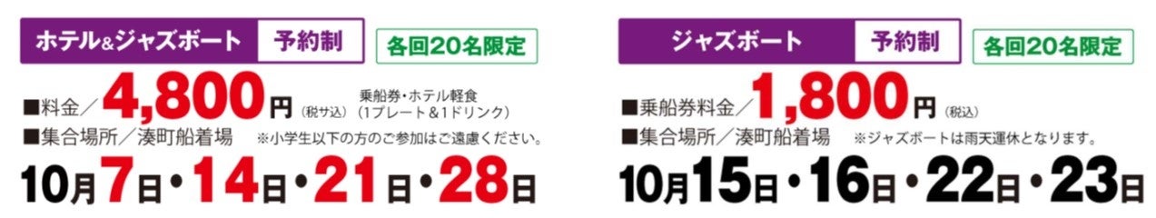 ■料金:「ホテル&ジャズボート」 4,800 円(税込) /「ジャズボート」 1,800 円(税込)