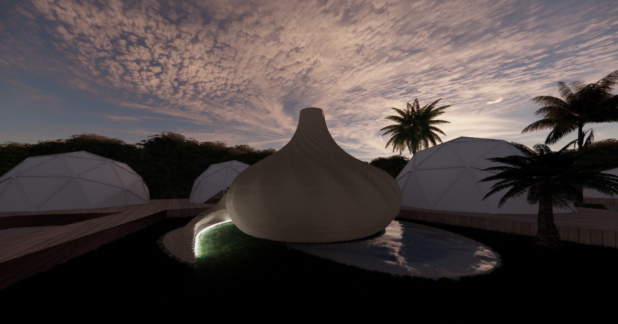 現在新設中の「SAZAE」は、その名が表す通り巻き貝を想起するようなころんとしたフォルムが特徴的。全体が美しく柔らかな曲線で型取られ、存在感がありながらも風景に溶け込むデザインが目を引きます。