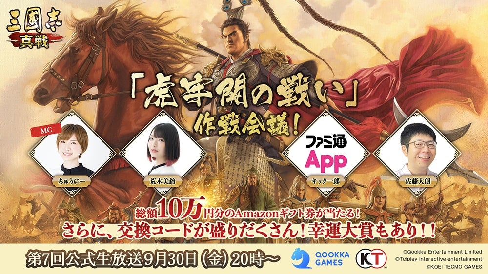 『三國志 真戦』第7回公式生放送『虎牢関の戦い作戦会議』9月30日20時からYouTube&Twitter Liveで配信決定!