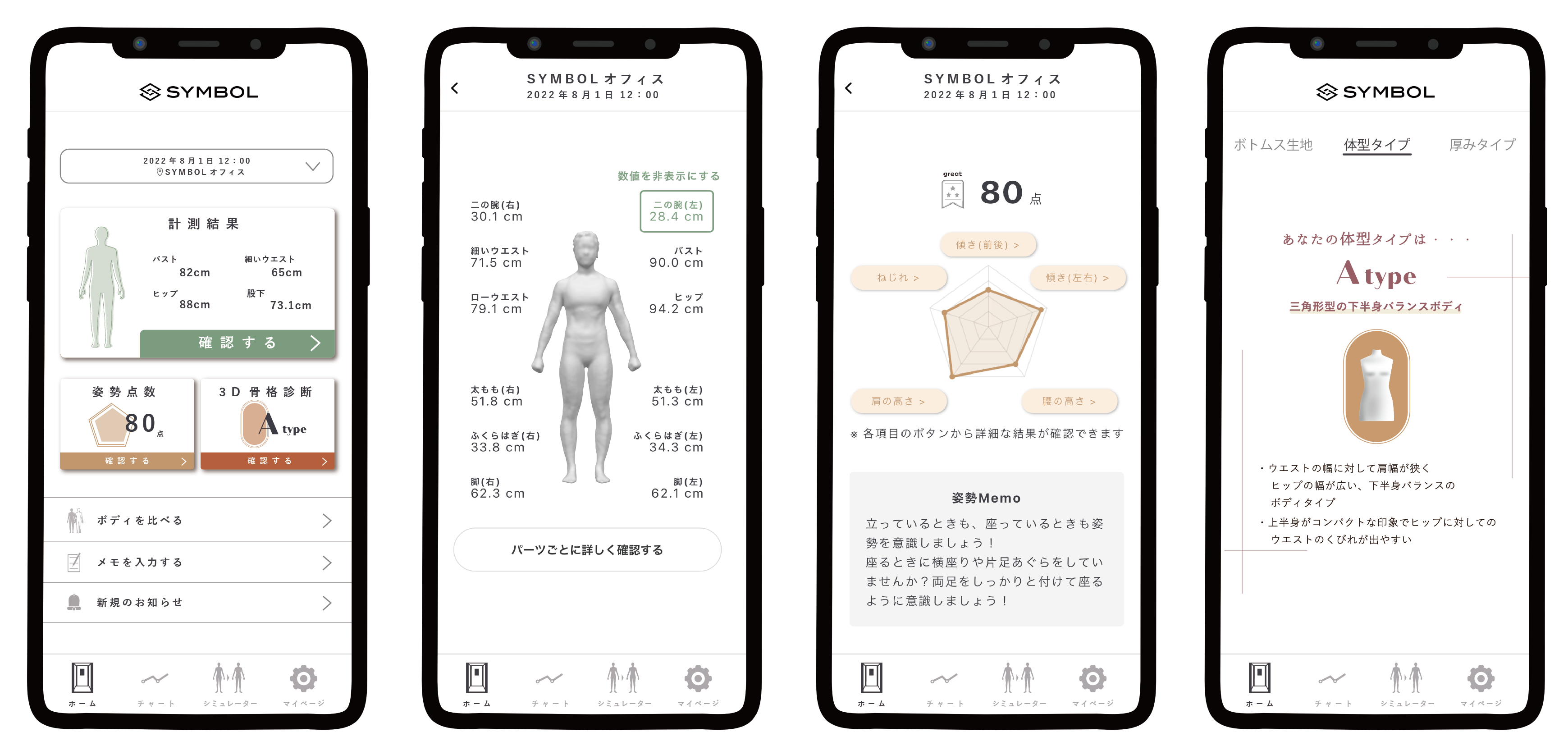 「3D骨格診断」は、SYMBOLが開発を手がける3Dボディスキャナー「BodyCapture Ⅱ」及びその解析アプリ「MyRealBody®」を通じて提供されるウェブサービスです。サービス利用者がBodyCapture Ⅱで全身をスキャンすると、まずSYMBOLが自社開発したアルゴリズムに基づいて骨格タイプを診断します。利用者は、診断結果をMyRealBody®上で確認できるとともに、科学的な視点で似合うアパレル商品の提案やパーソナルスタイリングサービスを店舗スタッフから受けることができます。従来は人による目視や触診での長時間の診断が一般的でしたが、本サービスでは短時間で3Dボディスキャナーによる精緻な計測結果を利用者に提供することが可能になります。