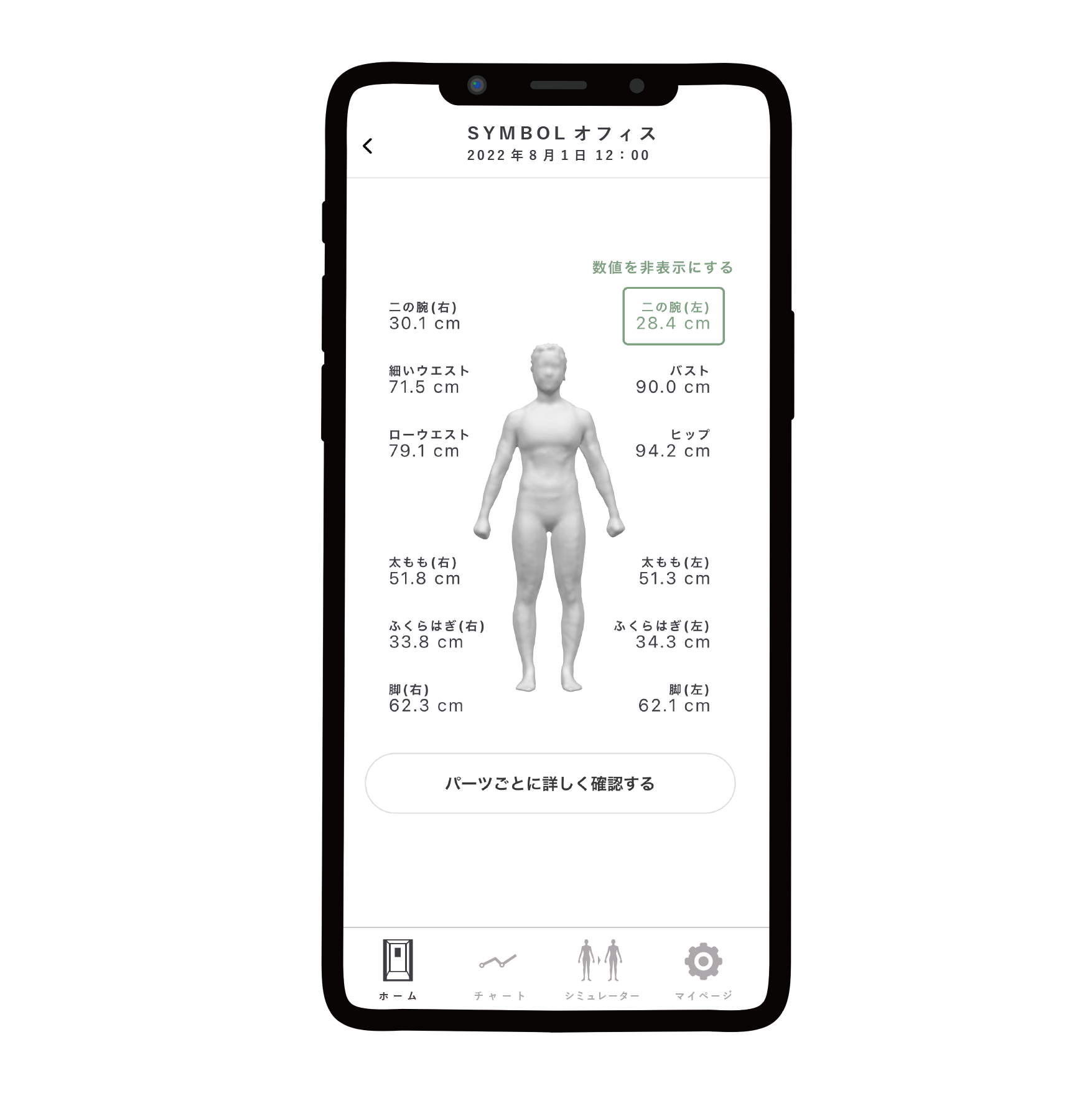 サービストライアルでは、阪神梅田本店4階・コミュニティスタジオにSYMBOLの3Dボディスキャナーを設置し、わずか0.8秒のボディスキャンでお客様の詳細な身体のサイズ計測や3D骨格診断の情報をウェブアプリで受け取ることができます。