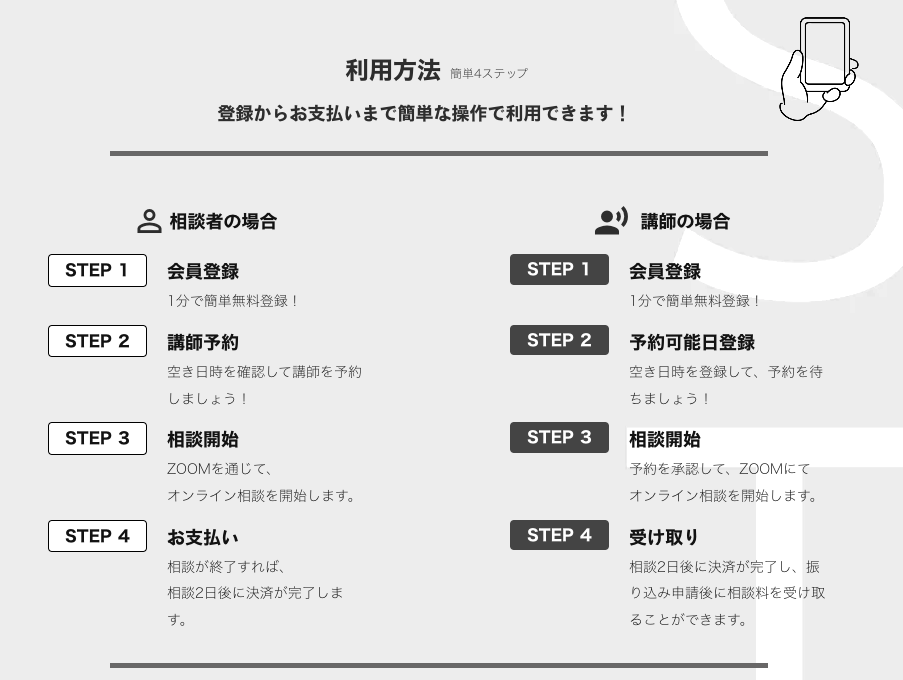 STEP 4 お支払い >>相談が終了すれば、相談2日後に決済が完了します。