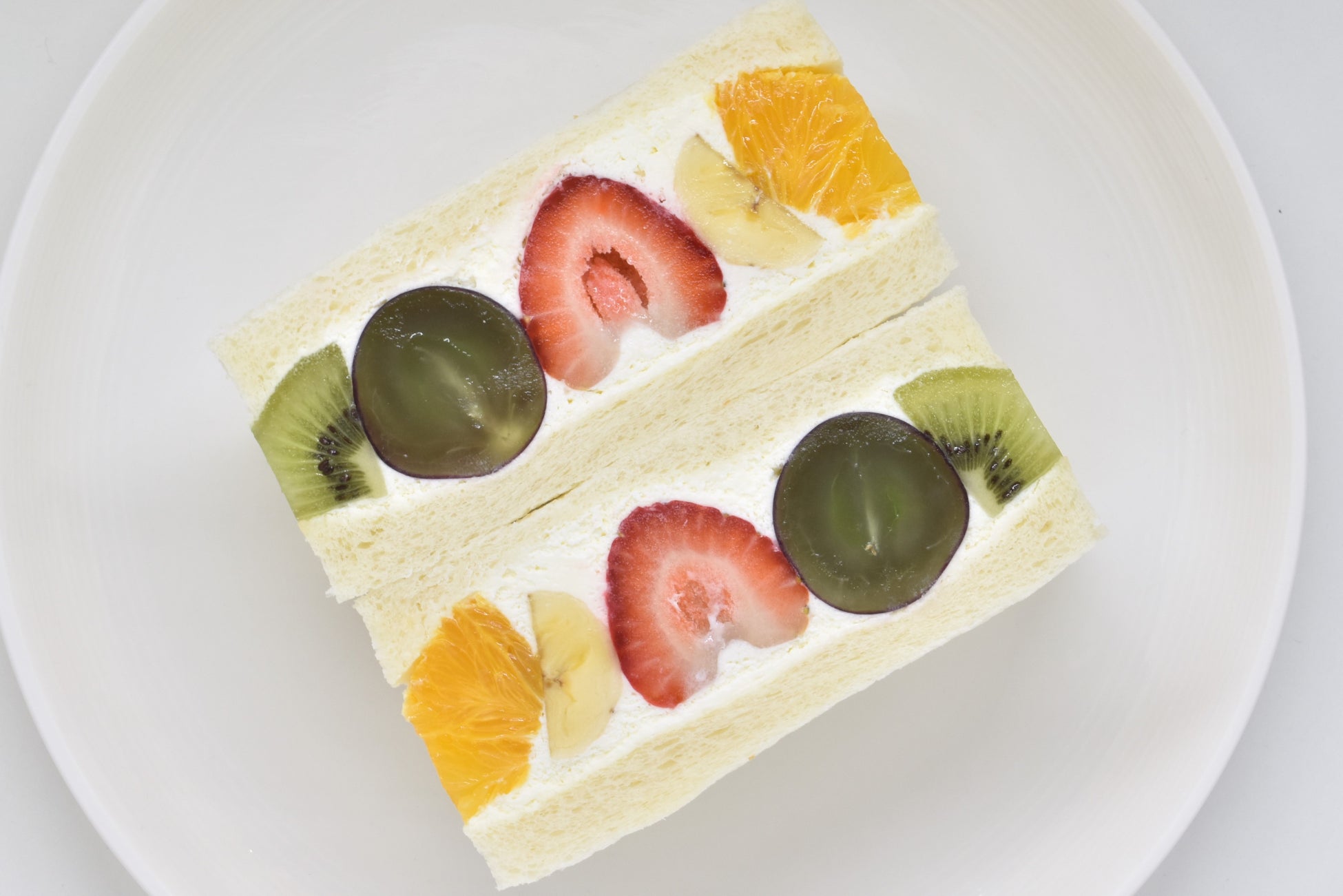 旬のフルーツと、甘さ控えめの生クリーム、ふわふわのパンのコラボレーション。見て可愛い、食べておいしいフルーツサンド。