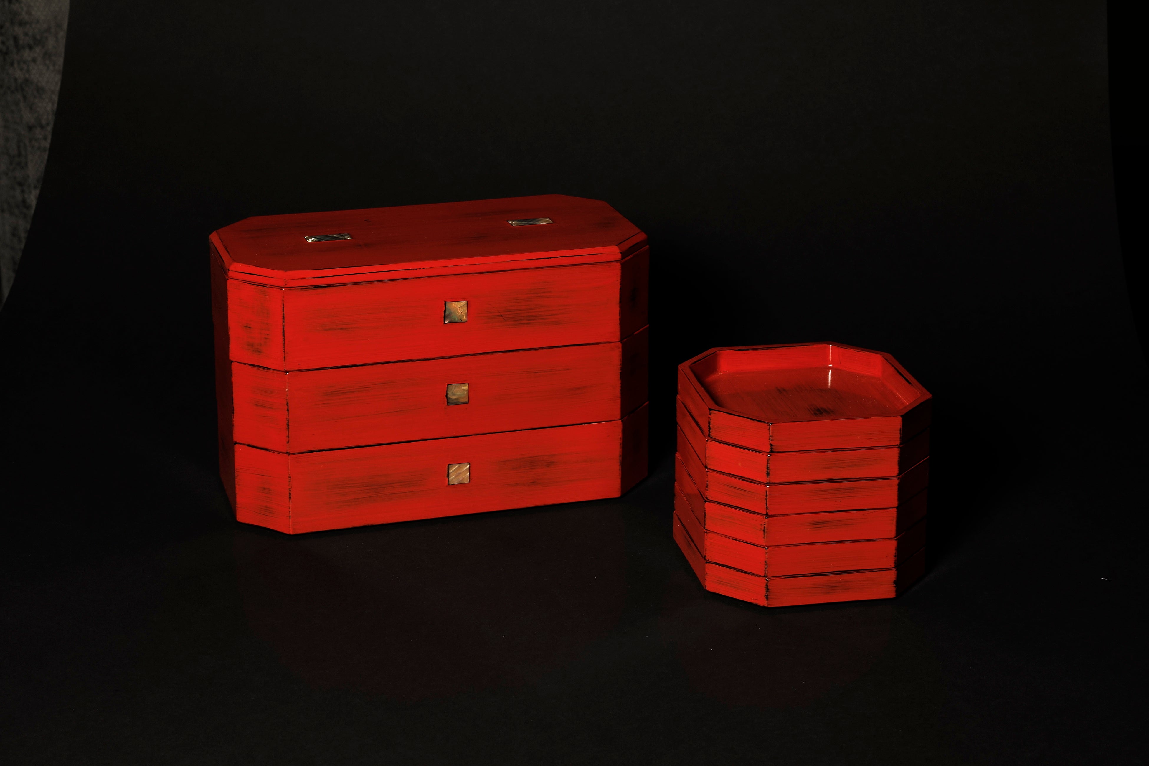 血の色であり、火の色であり、太陽の色である朱色が想起させるのは生命や再生の力。真塗と呼ばれる格式高い黒色の漆も人気ですが、黒の漆よりも昔から使われていた朱の漆は長い歴史の中、邪を祓う力を人々に与えてきました。ひとたび漆器に使えば、その神聖な力を秘めた道具になることでしょう。