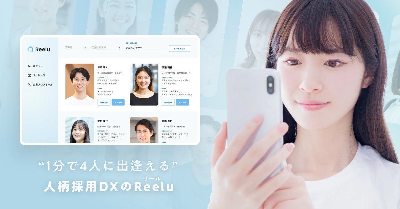 「1分で4人に出逢える」人柄採用DXのReelu(リール)約5000万円の資金調達を実施
