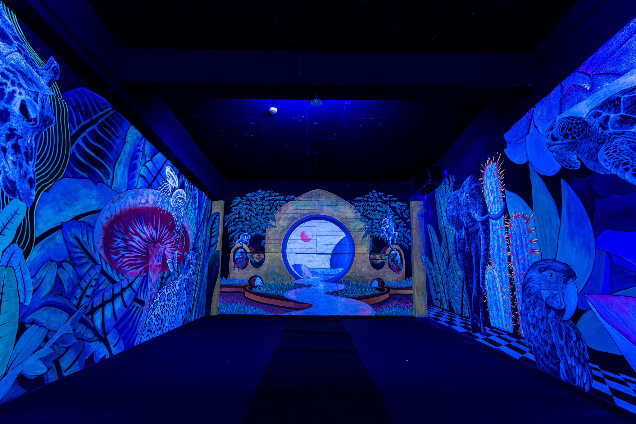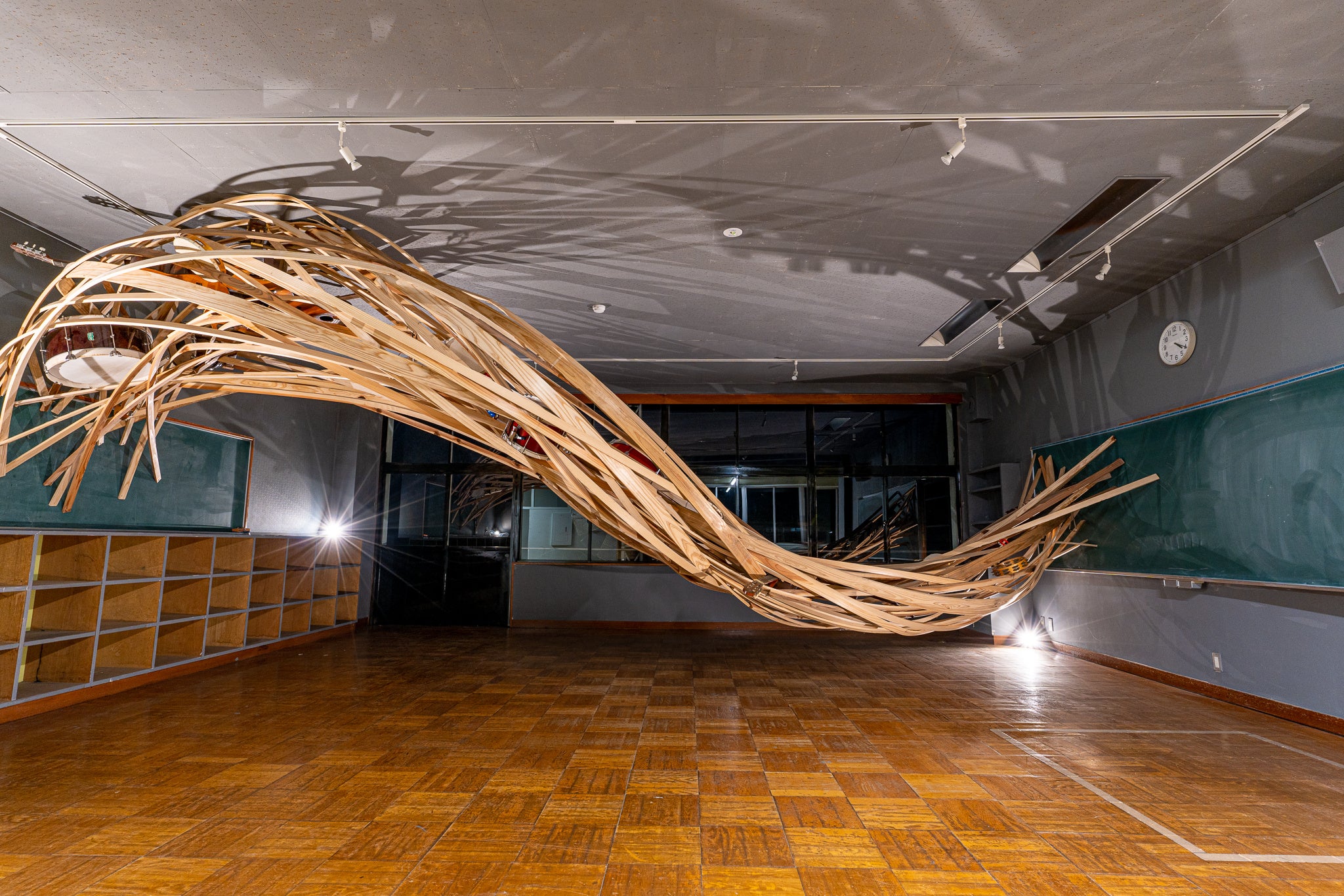 教室を使った、総勢16組の現代アートクリエイターによる作品の常設展示/個展などに使用できる企画展示スペース有り。