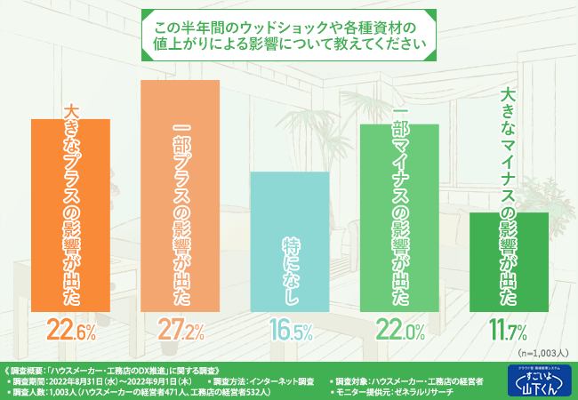 【ハウスメーカー・工務店の経営者1,003名に調査】4割近くがコスト削減の成果が出ていないと回答。各社のウッドショックや資材の値上がりへの対策状況とは