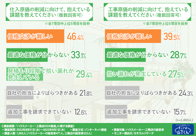 やはり仕入原価・工事原価ともに最も大きな課題は価格交渉が難しいことでした。