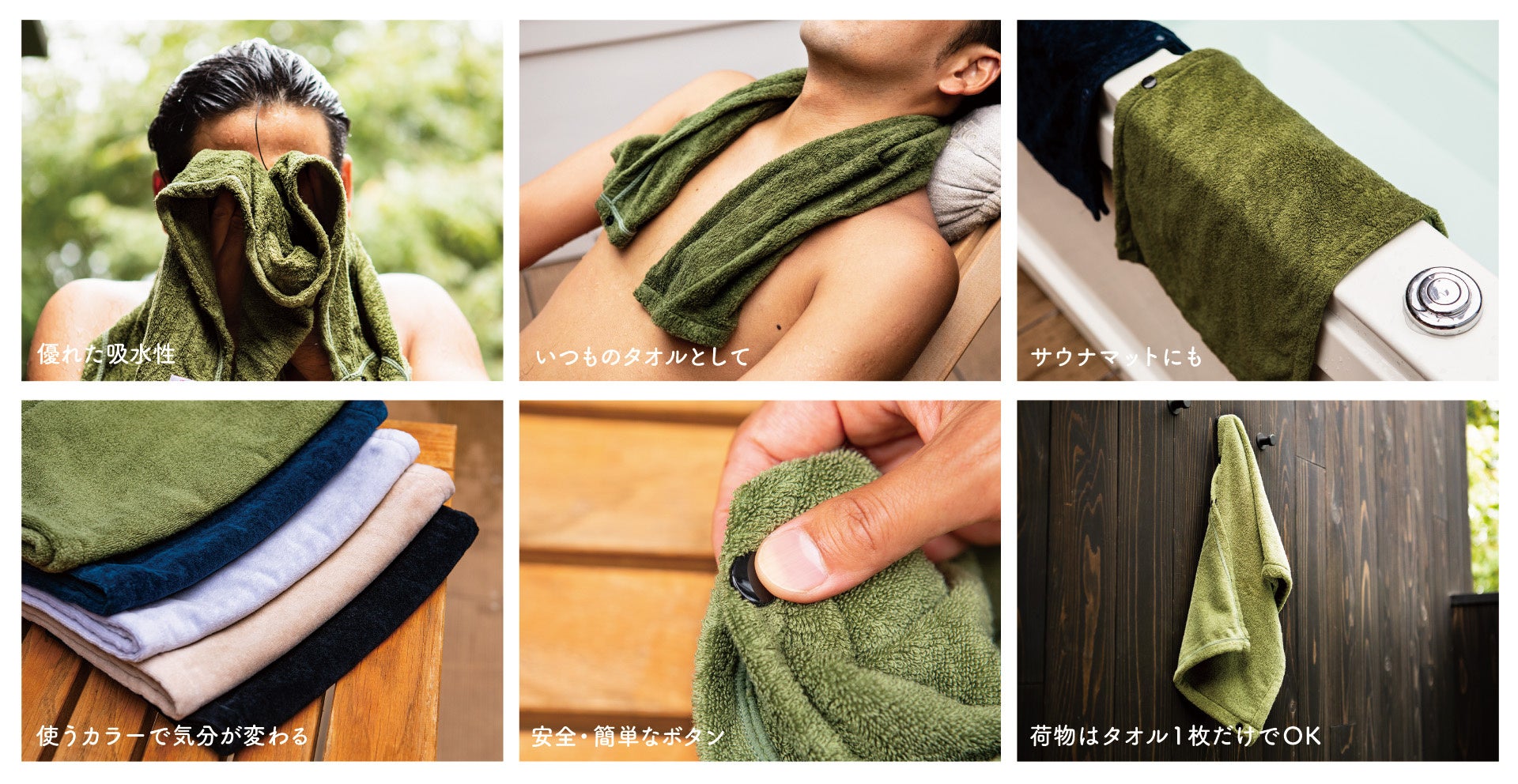 サウナの必需品のタオル1枚で、様々な楽しみ方ができる「サウナハットタオル」を通して、より多くの方にサウナの魅力が伝わってほしいと思います。息苦しさを低減したいサウナビギナーの方や、ロウリュやアウフグースの強烈な熱波をもっと楽しみたい上級者の方にもおすすめしたいアイテムです。これ1枚で、日常のサウナ活動、全国各地のサウナをめぐる旅、他にもアウトドアなどの場面などでもお楽しみいただけます。ぜひ自由な発想でサウナハットタオルをお楽しみください。