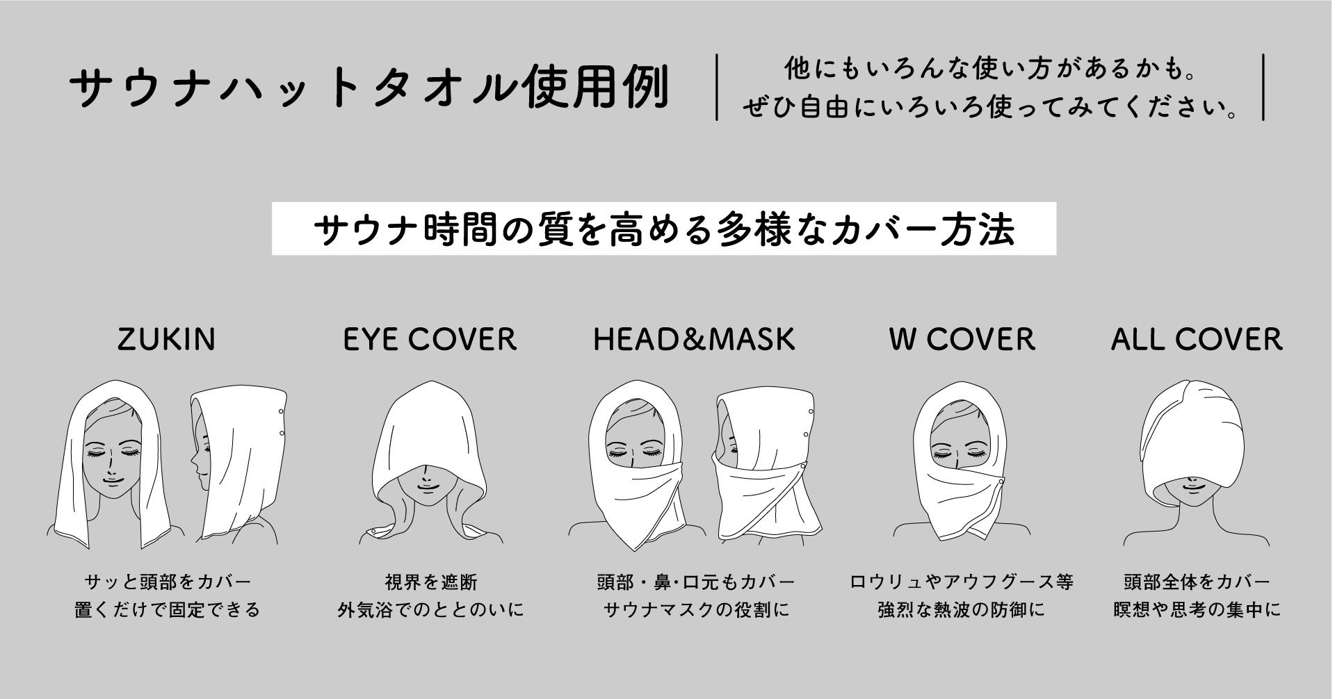 サウナハットタオルは、サウナの温湿環境や当日の体調に合わせて変えることができる5つのカバー方法をご提案します。