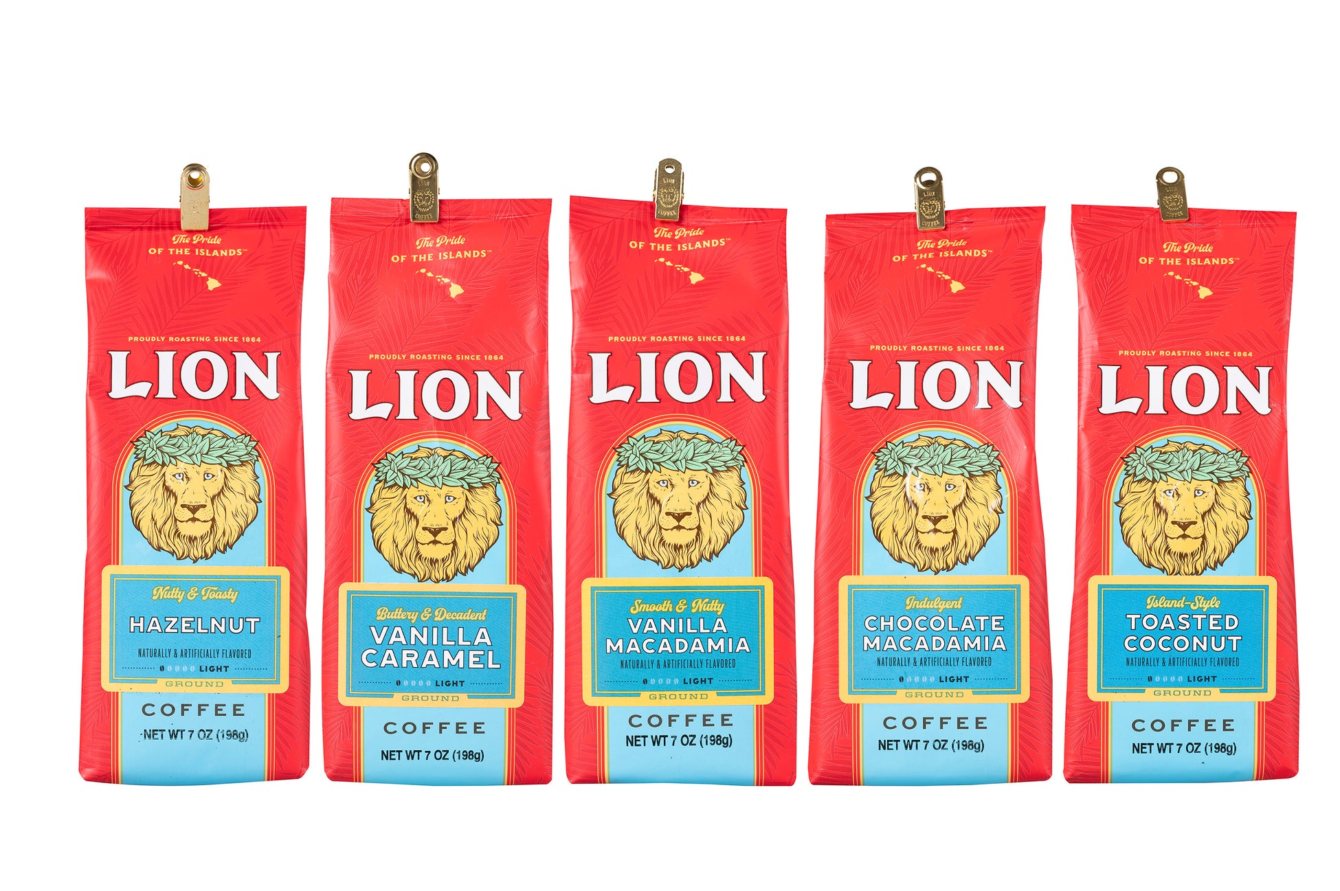 ハワイコーヒーカンパニーは、主として“ライオンコーヒー”と“ロイヤルコナ”というブランドを扱っています。“ライオンコーヒー”はアメリカで現存する最古のコーヒーブランドの一つです。1864年にオハイオ州で誕生し、1979年にハワイに移転しました。“ロイヤルコナ”は、1969年に「コナ」の産地であるハワイ島コナで誕生し、その名の通り、「コナ」を使った商品をハワイのみならず、アメリカ本土や日本に供給しています。両ブランドの製品特徴は、“フレーバーコーヒー”。アラビカ100%のコーヒー豆につけられたバニラやマカダミアナッツ、キャラメルなどの香りが、日常のコーヒーの楽しみ方を広げ、日々の生活を豊かにしています。