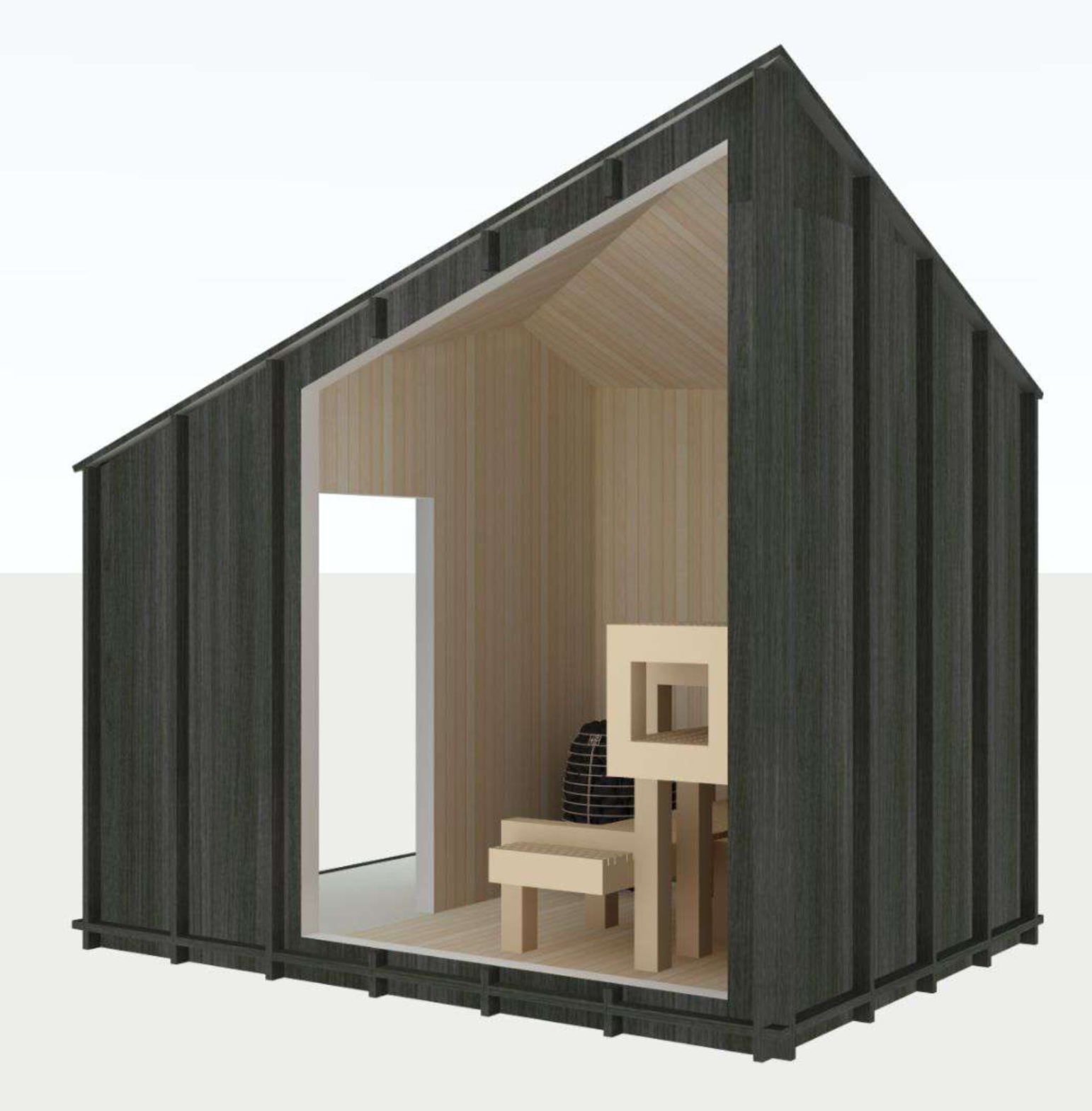 エストニアのサウナブランドHUUMサウナ&キャビンを提供するエープラスと、サウナキャビン設計のプロフェッショナルであるSAUNaiDEAのコラボレーション企画、SAUNaiDEAオリジナルデザインサウナキャビン。