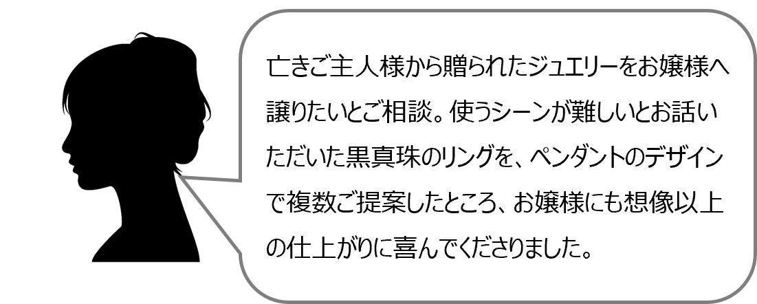 お手持ちのジュエリーを、世代を超えてお譲りできる、今一番愛せる姿へとリメイクするお手伝いをしています。