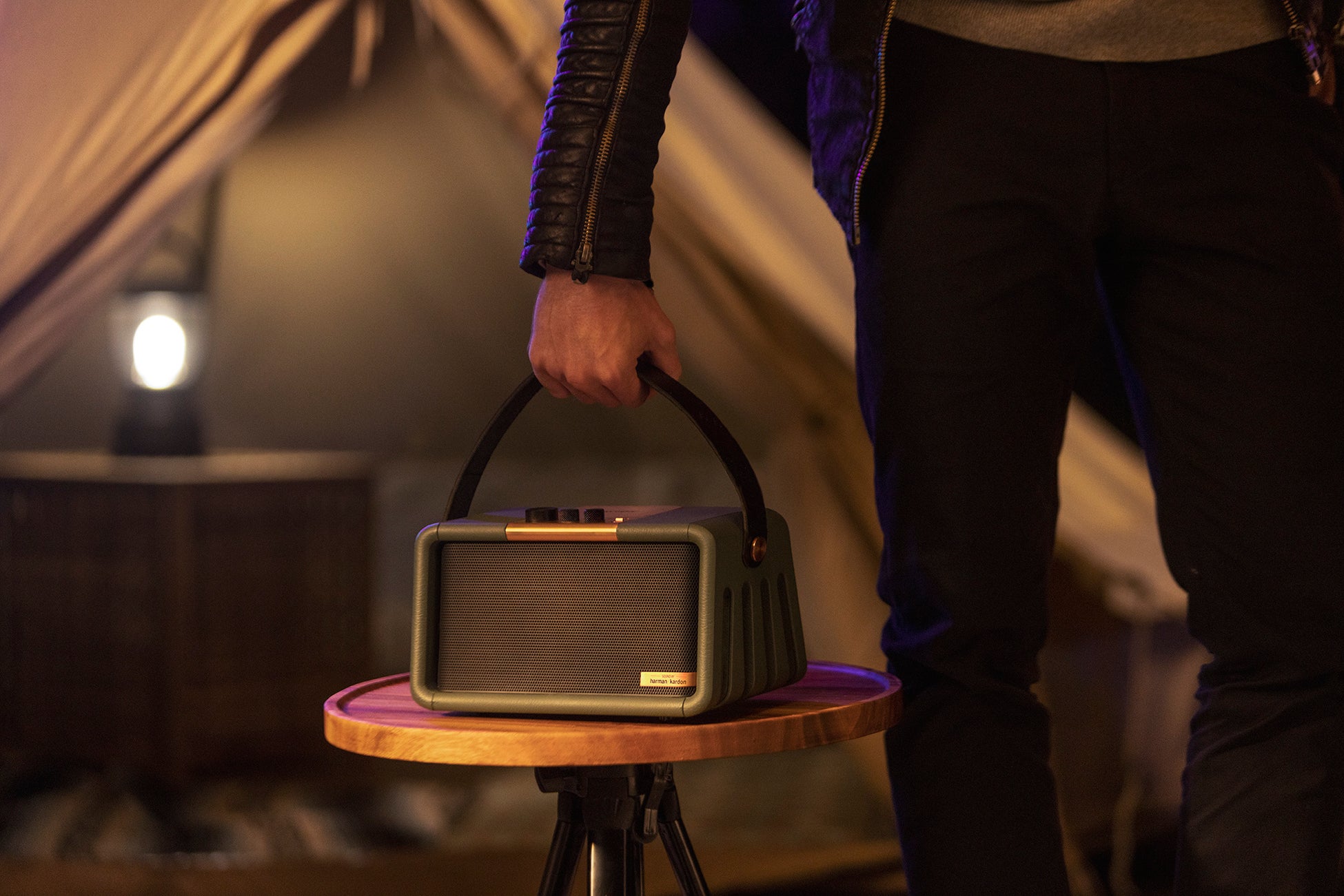 X300は、ご自宅はもちろん、外出先でも気軽に音楽や映像を楽しむことができる、携帯型のスピーカー&プロジェクターです。持ち運びを可能にしたのが、X300に内蔵された10,000mAhのバッテリー。フル充電の状態で、音楽なら6時間、映画なら3時間は楽しむことができます。音響システムはHarman Kardonのカスタマイズによるもので、スピーカースパイクなどの採用により不要な振動や干渉を抑え、圧倒的な音質を実現しています。