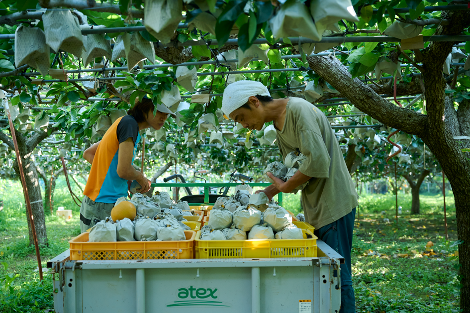 ことのみは、梨一つ一つに袋掛けをする有袋栽培で生産しており、直接実に農薬がかかることなく、生産者の手によってひとつひとつ丁寧に、こだわり抜いて育てられています。また、荒尾市は有明海に面しており、春先に海から暖かい風が吹くため、良質な梨が育ちます。