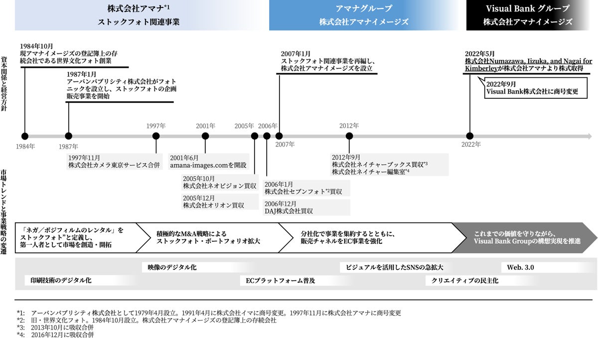 ※株式会社アマナイメージズの買収主体となった株式会社Numazawa, Iizuka, and Nagai for Kimberleyを2022年9月末にVisual Bank株式会社に名称変更