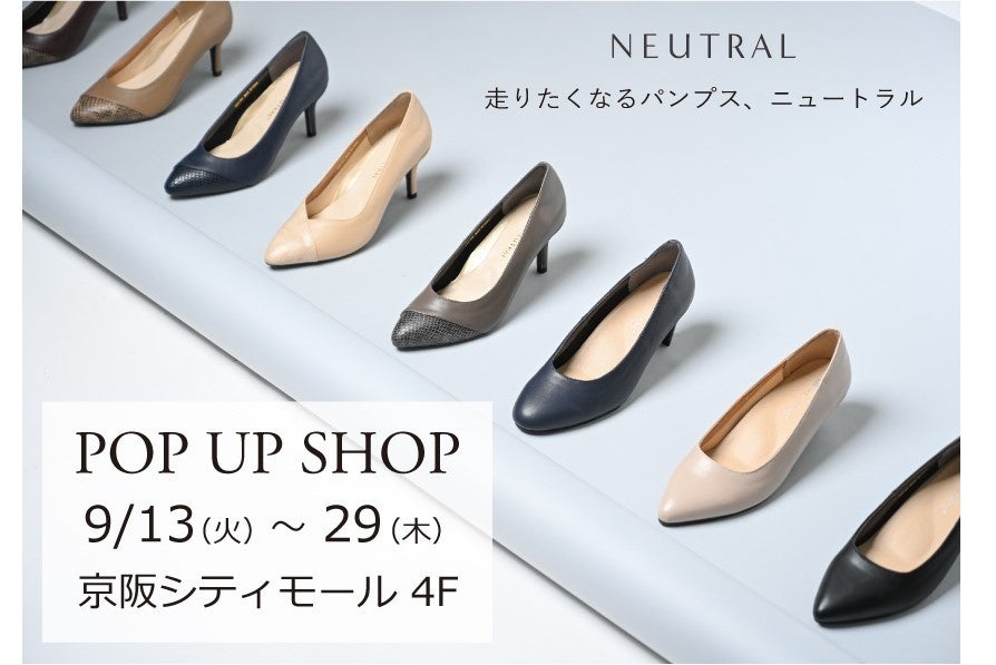 婦人靴ブランドNEUTRAL(ニュートラル)を運営する株式会社あとりえ岡田(所在地:兵庫県神戸市長田区、代表取締役:岡田洋児)は、陳列されたパンプスを自由に試せる“フィッティングストア形式”のポップアップストアを9月13日から京阪シティモールにて開催致します。