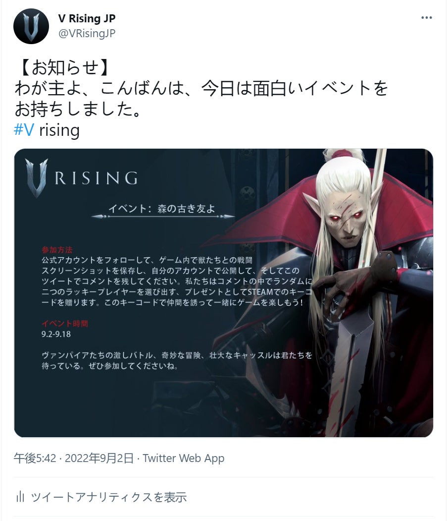 日本公式Twitterアカウントhttps://twitter.com/VRisingJP
