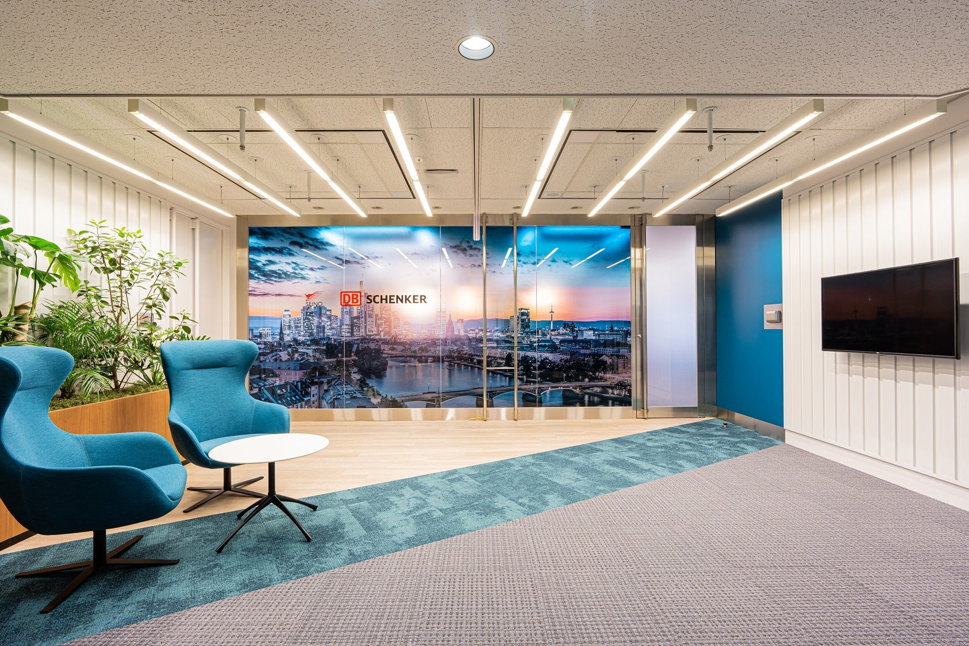 全体的なデザインコンセプトやカラーコーディネートはDBシェンカーのカンパニーカラーを採用し、シェンカーのブランドが強く感じられるデザインとなっています。また、加えて、自然環境を意識した要素もバランスよく取り入れました。これまでの部門毎の座席配置やパーテーションの利用を止めたことでスペースがより広く感じられ、コラボレーションしやすいレイアウトとなりました。