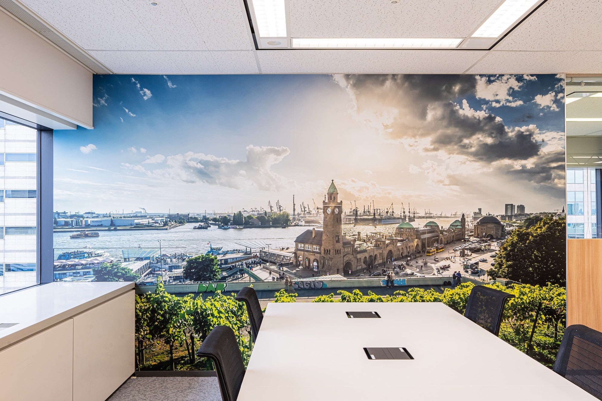 オフィス内各所には航空輸送、海上輸送、コントラクトロジスティクス、ランドトランスポート に関するもの、さらにサステナビリティや世界主要都市のグラフィックアートが壁一面を使って大きく貼られています。出社した社員の帰属意識が高まる効果とともに、来社されるお客様にも当社のグローバル業務について関心を抱いていただけると考えています。