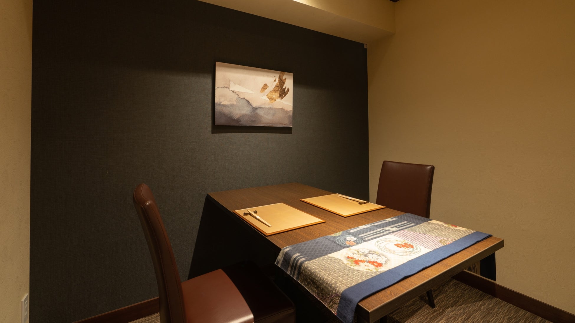 お食事は朝夕食ともにイス・テーブル席の個室風食事処にてご用意いたします。