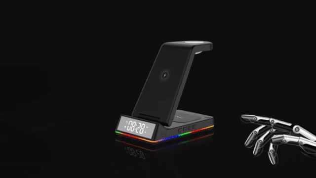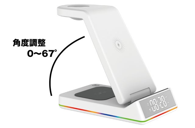 以前のバージョンから一つ有線のUSBポートが追加され、旧製品の充電発熱問題も改善されており、iPhoneシリーズ/アンドロイド/スマートウォッチ/イヤホンなど、幅広いデバイスに対応します。LEDライトは、普段の雰囲気ライトとして常に点灯することができますが、充電機器と本製品の充電エリアがずれているとカラフルライト点滅で提示します。さらに、アラーム時計機能付きで日常生活をもっと便利に彩りましょう♪