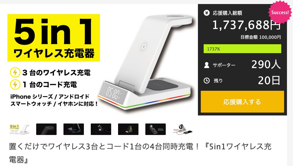 Glittering Starsは、「「5in1ワイヤレス充電器」を、国内応援購入サイト「Makuake」(https://www.makuake.com/project/glitteringstars/)にて2022年9月29日まで限定割引販売実施中!