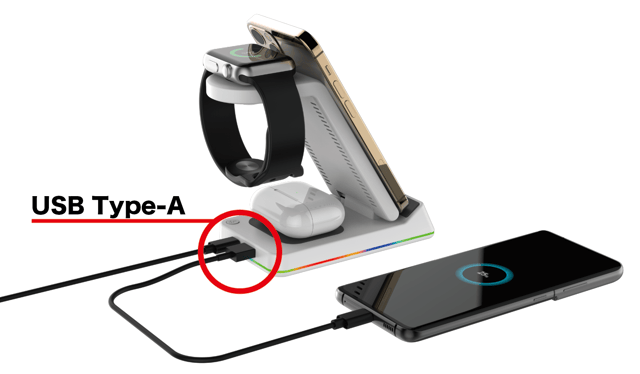 さらにUSB Type-A接続口付きなので、有線で1台、全同時に4台充電が可能です!