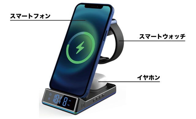 iPhoneシリーズだけではなく、アドロイド、Apple Watch、AirPodsの充電も対応します。
