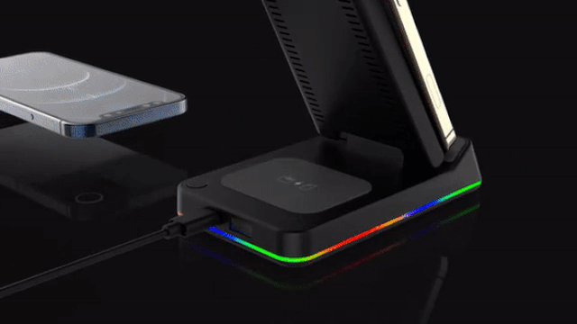 「5in1ワイヤレス充電器」は、置くだけで3台のワイヤレス充電と1台のコード充電の同時に4台同時充電が可能なチャージステーションです!