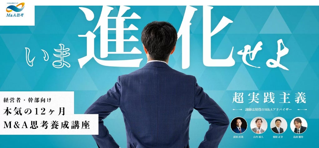 今回、10月17日(月)より開講する「M&A思考®養成講座」の参加者募集にあたり、よりセミナーの内容を理解して頂く機会として、毎月に計4回のオンラインセミナーを開催いたします。