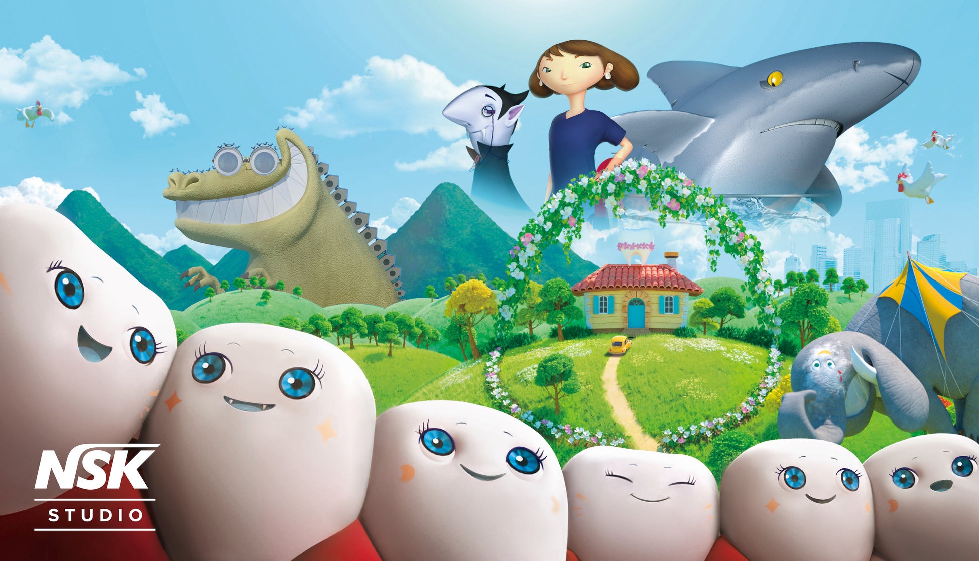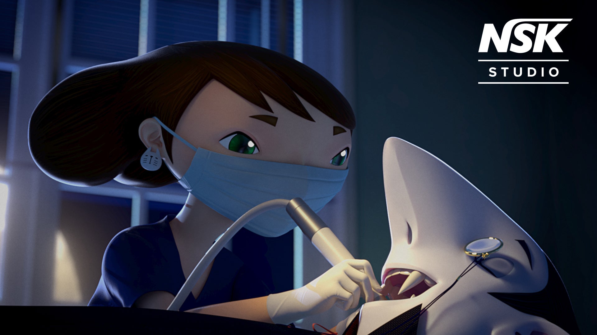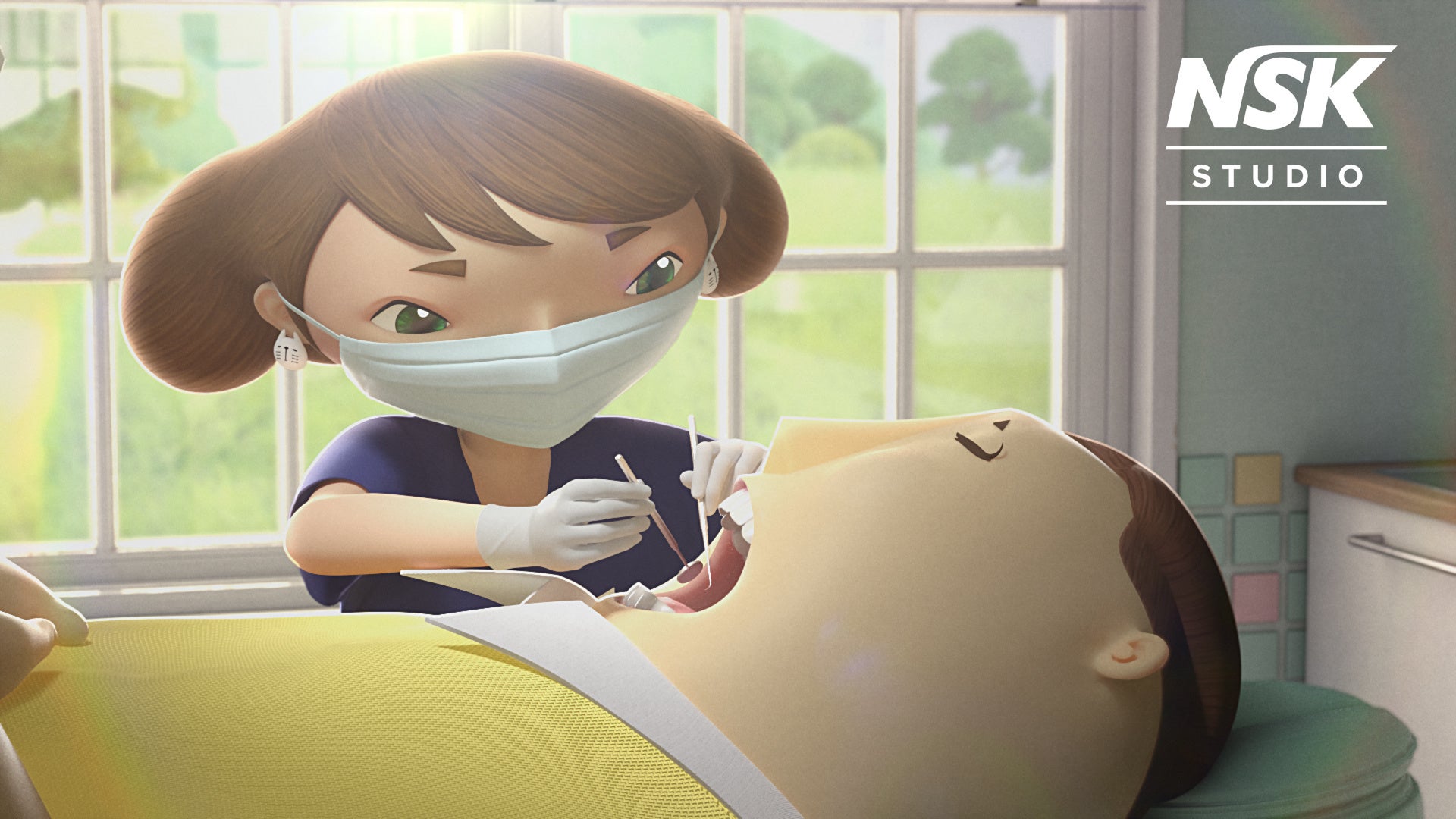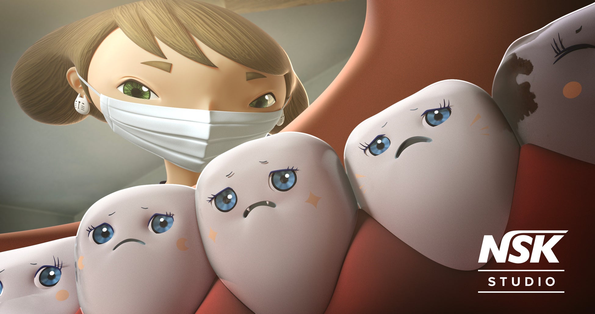 NSK STUDIOが贈るのは、世界でも類を見ない“歯”を主役にしたアニメーションです。世界のどこかにある“トゥースアイランド”のデンタルクリニックを舞台に、歯と会話ができるサクラ先生と様々な患者さんの“歯”の物語が繰り広げられます。国内はもちろん海外にも受け入れられやすい3DCGアニメーションの手法で制作し、これまでに3本の動画を配信しています。アニメーションの中に登場するのは、世界トップクラスの精度を誇るナカニシ製の歯科医療器具たち。環境に配慮した工場と確かな技術から生まれるナカニシの製品で、美しい歯と美しい地球を守っています。