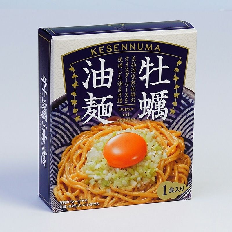 気仙沼の誇り、サメ文化を守り継承していく「石渡商店」では、気仙沼産の自家製オイスターソースと試行錯誤を繰り返したもちもちの乾麺の油まぜ麺も魅力の一品。