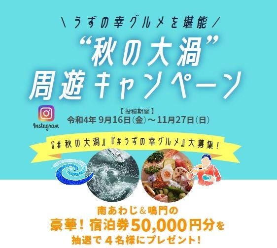- ~「大渦」と「うずの幸グルメ」を満喫!『#秋の大渦』『#うずの幸グルメ』ハッシュタグキャンペーン開催!~