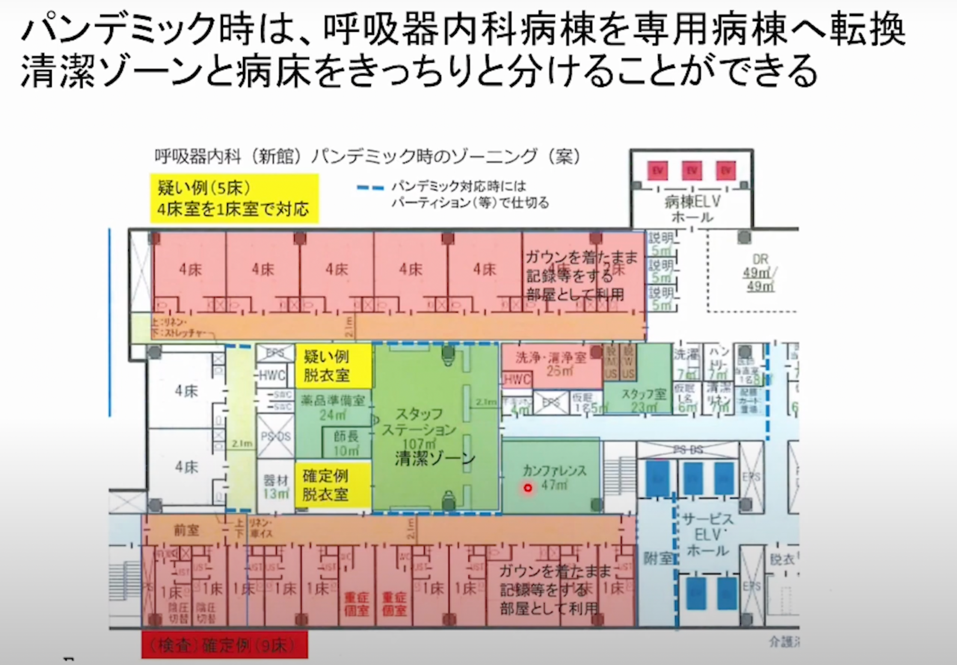 コロナ禍での福岡大学病院建て替えを経験(現在建設中)。感染症対策を踏まえた大病院の設計について講演。