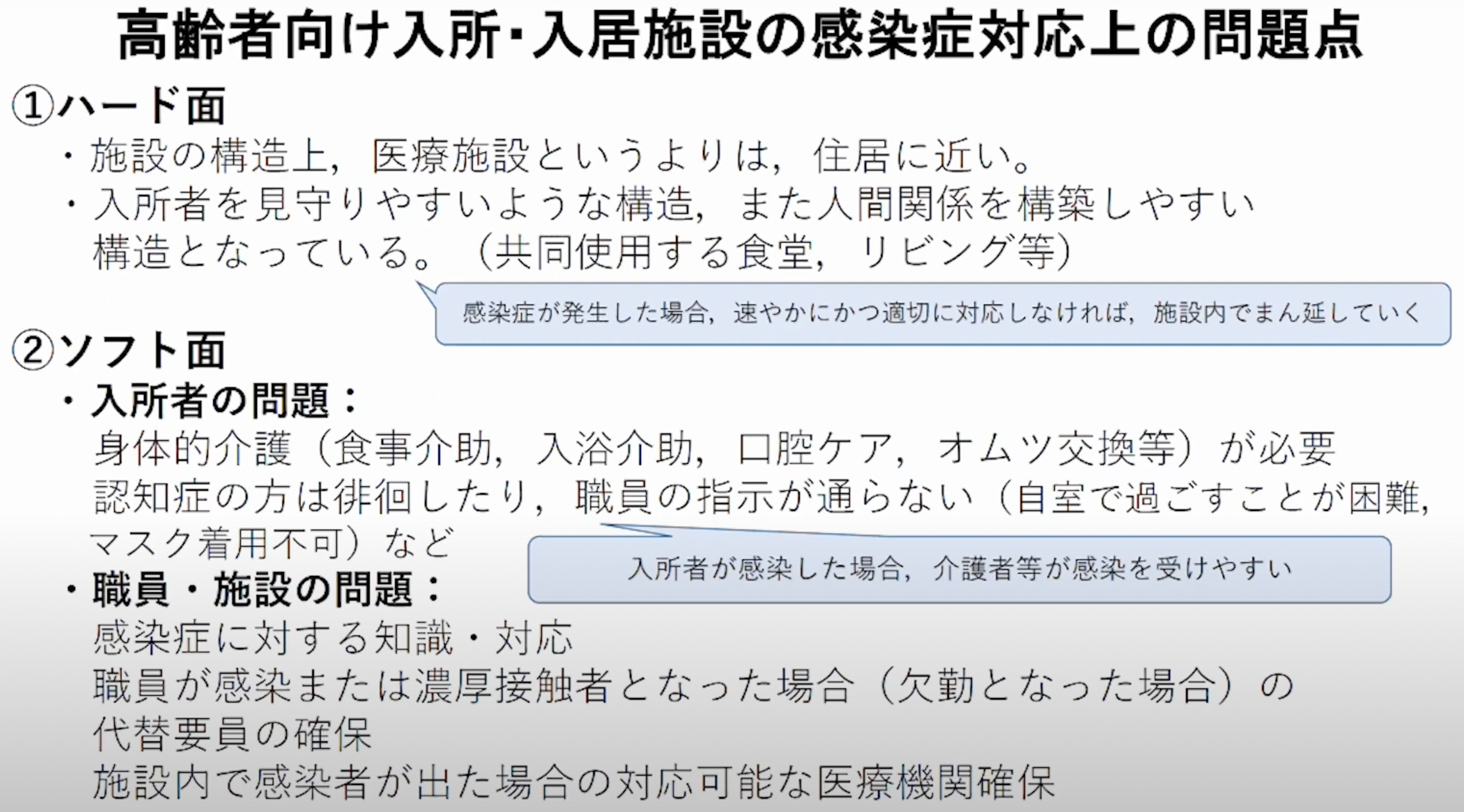 - クラスターを自施設で療養できるハードとソフト(介護施設)