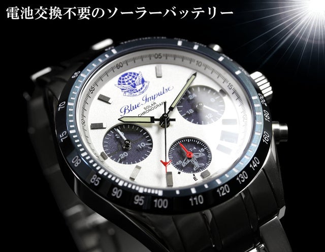 ◆ 栄光の歴史をあなたの腕に!ブルーインパルス日本製ソーラークロノグラフ腕時計