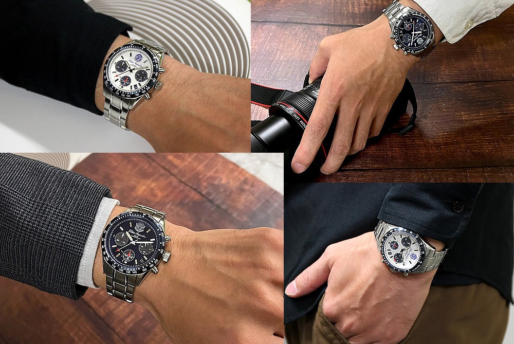 ブルーインパルスの腕時計は他社からも発表されておりますが、普段使いのしにくい主張の強いデザインが多いです。本モデルは普段使いできるブルーインパルスウォッチを目指し、ブルーインパルスの要素をさりげなく時計全体に溶け込むデザインが施されています。カジュアルなスタイルはもちろん、ビジネスシーンにも違和感なく使えます。