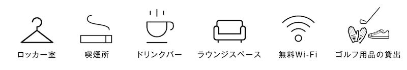 ゴルフ用品の貸し出しや、ロッカー(一部有料)・喫煙所のご用意に加え、ドリンクバーや無料Wi-Fiなど、ラウンジスペースのファシリティも充実しています。